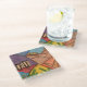 Desert Southwest Cactus glass coaster, with a colourful folk art image with an Arizona style. With cactus, a sombrero and warm colours this piece will add a southwestern touch to your home decor.