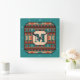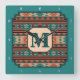 Southwest Design Turquoise Terracotta Monogram Square Wall Clock