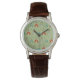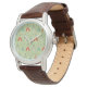 I like the illustrative watch with the lady on it. It is a great reminder that I am blessed and it has a very sturdy leather band. The colors are true and vibrant. Love the color of the Leather also. Very nice.