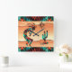 This is a Unique "One of a Kind" Southwest Kokopelli Square Wall Clock! It Features a Kokopelli Playing the Flute Under the Sun and Dancing Under Around a Cactus on a Desert Background...Surrounded by a Southwest Border in Turquoise, Orange and Black!