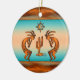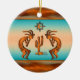 Personalise this "One of a Kind" Southwest Kokopelli Christmas Ornament! It Features Two Southwest Kokopelli in Copper and Black Playing the Flute and Dancing Around a Cactus Under the Sun on a...Turquoise and Orange Sunset Background!