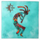 Brighten Your Home with this Unique "One of a Kind" Southwest Kokopelli Tile! It Features a Southwest Kokopelli in Turquoise, Orange and Black Playing the Flute and Dancing Under the Sun on a Turquoise and White Background!