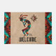 Personalise this Unique "One of a Kind" Southwest Kokopell Doormat! It Features a Southwest Kokopell Playing the Flute and Dancing Under the Sun on a Tan Background...Surrounded by a Southwest Border in Turquoise, Orange and Black!