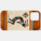This is a Unique "One of a Kind" Southwest Kokopelli Cell iPhone Case! It Features a Southwest Kokopelli in Turquoise, Orange and Black Playing the Flute and Dancing Under the Sun...on a Sandstone Background...Surrounded by Copper Borders!!