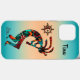 Personalise this Unique "One of a Kind" Southwest Kokopelli Cell Phone Case! It features a Kokopelli Playing the Flute and Dancing Under the Sun on a Turquoise and Orange Sunset Background!
