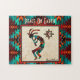 Personalise this Unique "One of a Kind" Southwest Kokopelli Puzzle! It Features a Southwest Kokopelli Playing the Flute and Dancing Under the Sun on a Sandstone Background...Surrounded by a Southwest Border in Turquoise, Orange & Black!