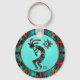 This is a Unique "One of a Kind" Southwest Kokopelli Keychain! It Features a Kokopelli Playing the Flute and Dancing Under the Sun on a Turquoise Background...Surrounded by a Southwest Border in Turquoise, Orange & Black!