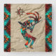 This is a Unique "One of a Kind" Southwest Kokopelli Wall Clock! It Features a Southwest Kokopelli Playing the Flute and Dancing Under the Sun...on a Tan Sandstone Background...Surround by Turquoise, Orange and Black Borders!