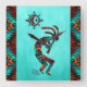 This is a Unique "One of a Kind" Southwest Kokopelli Wall Clock! It Features a Southwest Kokopelli Playing the Flute and Dancing Around a Cactus Under the Sun...on a Turquoise Background with Turquoise, Orange and Black Borders!