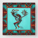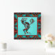 This is a Unique "One of a Kind" Southwest Kokopelli Wall Clock! It Features a Kokopelli Playing the Flute and Dancing Under the Sun on a Turquoise Background...Surrounded by a Southwest Border of Turquoise,Orange & Black!