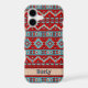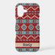 Personalize this southwest style phone case with a name, text, or none at all on my original design featuring a bold geometric pattern representing southwest mesas and mountains in red and turquoise inspired by the colors and patterns of the desert southwest.