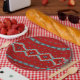 An original design in a bold Red and Turquoise geometric pattern created by Artellus. The artist was inspired by the colours and patterns around her home in the desert southwest.