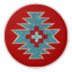 An original design in a bold red and turquoise geometric pattern created by Artellus. The artist was inspired by the colours and patterns around her home in the desert southwest.