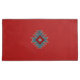 An original design in a bold red and turquoise geometric pattern created by Artellus. The artist was inspired by the colours and patterns around her home in the desert southwest.