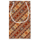 Native American southwestern Indian geometric pattern of warm earth tones of tan, sand, grey, brown, muted orange, and rust.