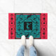 Southwest Pattern Wolf and Kokopelli. Rug Doormat Vivid colour combination that you can customise background colours to match your decor. Kokopelli - Native American Indian cultures. Attributed to ancient aliens or tribal art and inspired by cave and rock drawings. Customise your Southwestern Style Wolf with KoKo Native American door mat rug colours and styles. Great gift idea.
