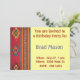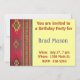 This fun invitation features a southwest style weaving on the left hand side. The right side has a yellow background and looks great with red and blue text. All text is customisable.