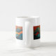 A coffee cup with an artistic representation of a sunset in the southwest United States.