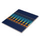 Inspired by the beautiful sunset skies and tall Ponderosa Pines of Arizona, this original artwork features a glowing orange, yellow and blue sunset sky behind geometic ponderosa trees and yellow stars on a deep blue background.