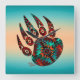 This is a Unique "One of a Kind" Southwest Tribal Bear Paw Wall Clock! It Features a Native American Tribal Bear Paw which Represents Protection and Good Health...on a Turquoise and Orange Sunset Background...Surrounded by a Southwest Turquoise, Orange and Black Border!
