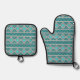 Southwest Turquoise Stones Geometric Pattern Oven Mitt & Pot Holder Set