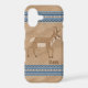 Personalize with a name, text or no text at all on my original artwork of a pictograph-style walking pronghorn antelope drawn on a rocky textured background with blue and brown geometric borders inspired by the prehistoric rock art, petroglyphs, pictographs and herds of american antelopes near my home in the Southwest.