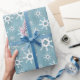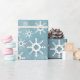 Inspired by the rocks, design elements and petroglyphs distinctive to the artist's surroundings in the southwest, this original artwork features a turquoise and silver grey background with geometric snowflakes, pine tree borders and deer drawings based on actual petroglyphs found in Arizona and Utah. Coordinated designs allow you to mix and match patterns, goes well with rustic lodge theme décor, southwest or santa-fe style, western designs and holiday parties in winter.