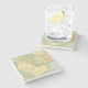 The coasters are gorgeous, a quality feel and heavy weight. They look like a precious archeological find. A rustic stone juxtaposed with a modern floral black and white print. I like the way the print goes slightly imperfect on the cut stone edges giving them a kind-of natural beauty.