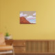Print in a boho / minimalist style illustration of a Southwestern desert scene with a red rock mesa and clouds