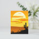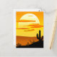 Postcard in a minimalist, modern landscape of the Southwestern desert and desert plants, in shades of orange, golden yellow, and brown