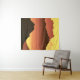 Tapestry in retro, minimalist desert mountains at sunset, in shades of deep rust orange, golden yellow, and brown