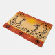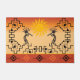 Southwestern Kokopelli Doormat or kitchen rug. Vivid colour combination that you can customise background colours to match your decor. Kokopelli Native American Indian cultures say KoKo hailed in seeds, spring and fertility. Lovely image in shade of vivid yellows, and kokopelli silhouettes. Attributed to ancient aliens or tribal art and inspired by cave and rock drawings. Customise your Southwestern Style Native American door mat rug colours and styles. Great gift idea.