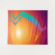 Native American southwestern Kokopelli Tapestry- Ancient Kokopelli wall hanging. Colourful Kokopelli southwestern prehistoric ancient art. A colourful background with the setting sunset. Inspired by ancient petroglyph rock and cave drawing of the musical Kokopelli. Ancient symbols by man. You can customise your canvas wall hanging colour and more to suit your home decor. Ancient artists southwestern themed design. Great symbol for earth art or mysteries still unsolved theme. Simple colourful shades symbol hanging wall art for any room.