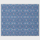 Southwestern / Aztec inspired batik textile design wrapping paper in a sun dial / mandala pattern - navy / indigo blue and white, accented with cerulean blue