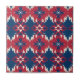 This tile features a vibrant southwestern tribal pattern in red, white, and blue. The design incorporates geometric shapes and motifs reminiscent of Native American textiles, making it a striking choice for adding a touch of rustic charm to any space. The pattern is seamless, allowing for continuous tiling across larger areas.