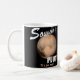 Features a New Horizons photo of the dwarf planet Pluto with the words "Souvenir of PLUTO -- It's far out!" in typography reminiscent of 20th century roadside kitsch.
