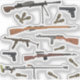 A vector drawing featuring Soviet WW2 rifles, automatic and AT weapons, pistols and machine guns. There you can find: