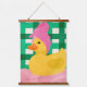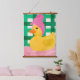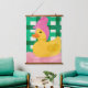 A charming rubber duck wrapped in a pink towel turban sits atop soft, cosy towels. The vibrant green gingham background adds a playful contrast to the warm pastel tones. Perfect for adding a touch of whimsy and relaxation to any space!