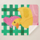 A charming rubber duck wrapped in a pink towel turban sits atop soft, cosy towels. The vibrant green gingham background adds a playful contrast to the warm pastel tones. Perfect for adding a touch of whimsy and relaxation to any space!