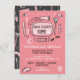Super cute and funky Spa birthday party invitations. Features makeup, nail polish, eye mask and other fun spa products. Pretty pinky coral and chalkboard background. Perfect for a sleepover!