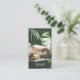 A stylish spa business card with a transparent white frame design on the front and more details on the back features a design of flowers, leaves, oil, and towels. Personalise this business card to be uniquely yours.