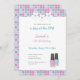 A Modern Spa Party Invitation featuring a nail polish illustration in a pink and turquoise colour scheme. Perfect for a girl's birthday party.