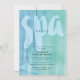 Spa party invitation featuring blue and green watercolor background perfect for kids and adults.
