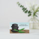 Business cards with a peaceful illustration of spa rocks and bamboo leaves on a bamboo table for your spa and relaxation resort or local business.