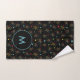 This bath towel set features a Mid Century Space Age atomic inspired motif interspersed with random dots in a colourful pattern. All four colours and the background may be edited for a custom look. The hand towel features an easy to personalise monogram.