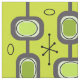 This atomic era styled mid century modern abstract art has circles, lines and sputnik starbursts. For lovers of midcentury kitsch designs. Yellow-green.