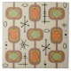 This atomic era styled mid century modern abstract art has circles, lines and sputnik starbursts. For lovers of midcentury kitsch designs. Multicolored and colourful with light beige, brown, orange and green.