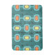 This atomic era styled mid century modern abstract art has circles, lines and sputnik starbursts. For lovers of midcentury kitsch designs. Multicolored and colourful with teal, turquoise, orange and yellow.