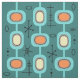 This atomic era styled mid century modern abstract art has circles, lines and sputnik starbursts. For lovers of midcentury kitsch designs. Multicolored and colourful with teal, turquoise, orange and yellow.