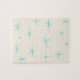 This Space Age Turquoise Starbursts Puzzle pattern features blue starbursts on a creamy background with gold coloured speckles. Inspired by a classic mid century modern dish pattern, this design has an authentic vintage flair. The retro kitschy goodness will make you feel like you’ve stumbled across a flea market treasure. This pattern will be equally at home in a New York City penthouse apartment or an atomic Palm Springs house. Let this minimalist vintage pattern inspire you!